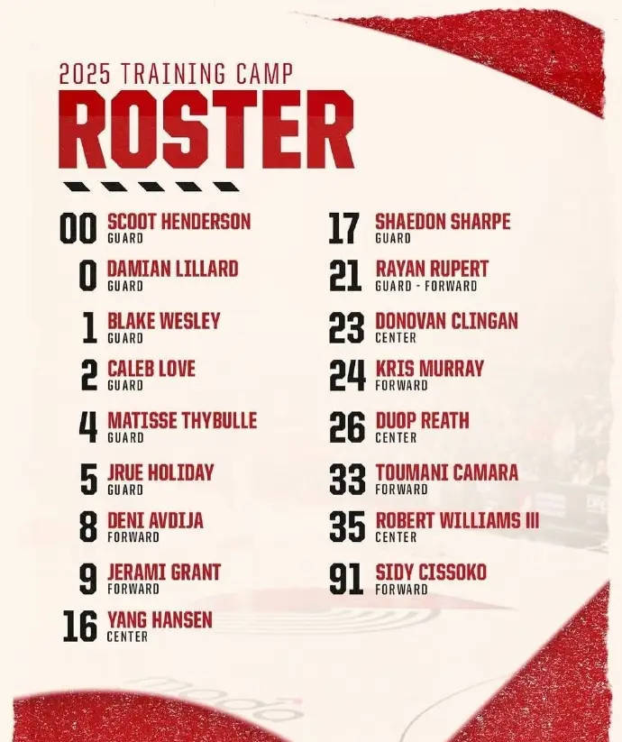 开拓者公布17人训练营名单:利拉德领衔 杨瀚森在列